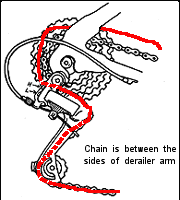 the rear Derailer arm is pointing as far forward as it will