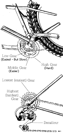 shifting mechanism (Derailer), and the right hand controls the rear.